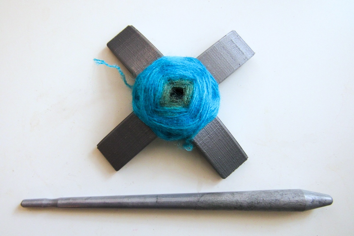 Which brings us to the popular TurtleMade Turkish spindle, a 3d-printed, extremely affordable cross-armed spindle available on Etsy. Please note that I purchased this spindle myself for this review. I opted for the Micro size, which has a 4” shaft, 3” arms, and typically weighs in at about a third of an ounce.