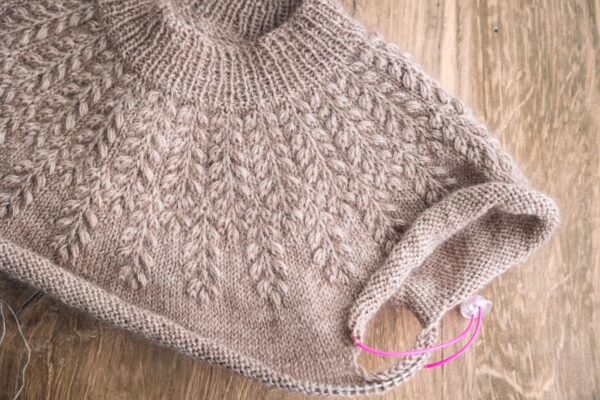 Once your gauge is determined, work the beginning cast on, yoke increases, and design instructions as listed in the pattern.