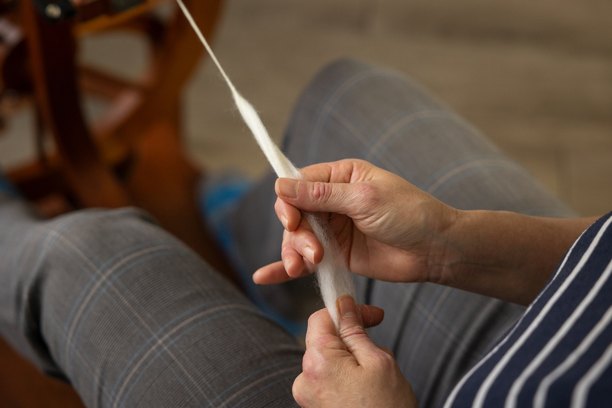 It is helpful to prepare your combed-top when you plan to make slubs. Because you make this kind of yarn using a forward draft, combed top with all the fibres nicely lined up makes the slubs easier to produce.
