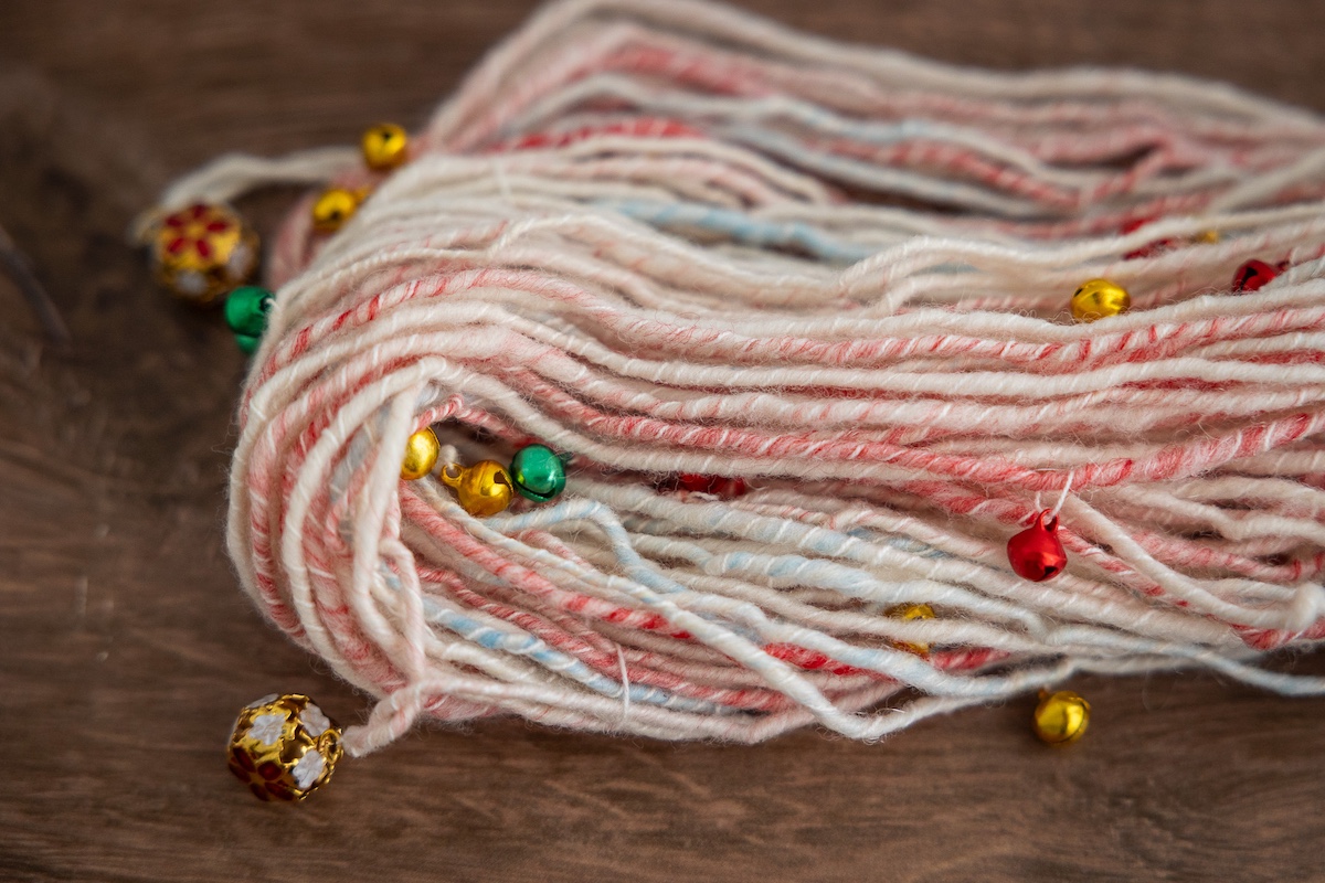 Lastly, the show stopper: Bells. For my Jingle All the Way Yarn, I used bells from a local Canadian dollar store. There is no end to the interesting craft materials one can find in places like this! We will also be sharing beads in this article for those who can’t fit bells through their orifice.