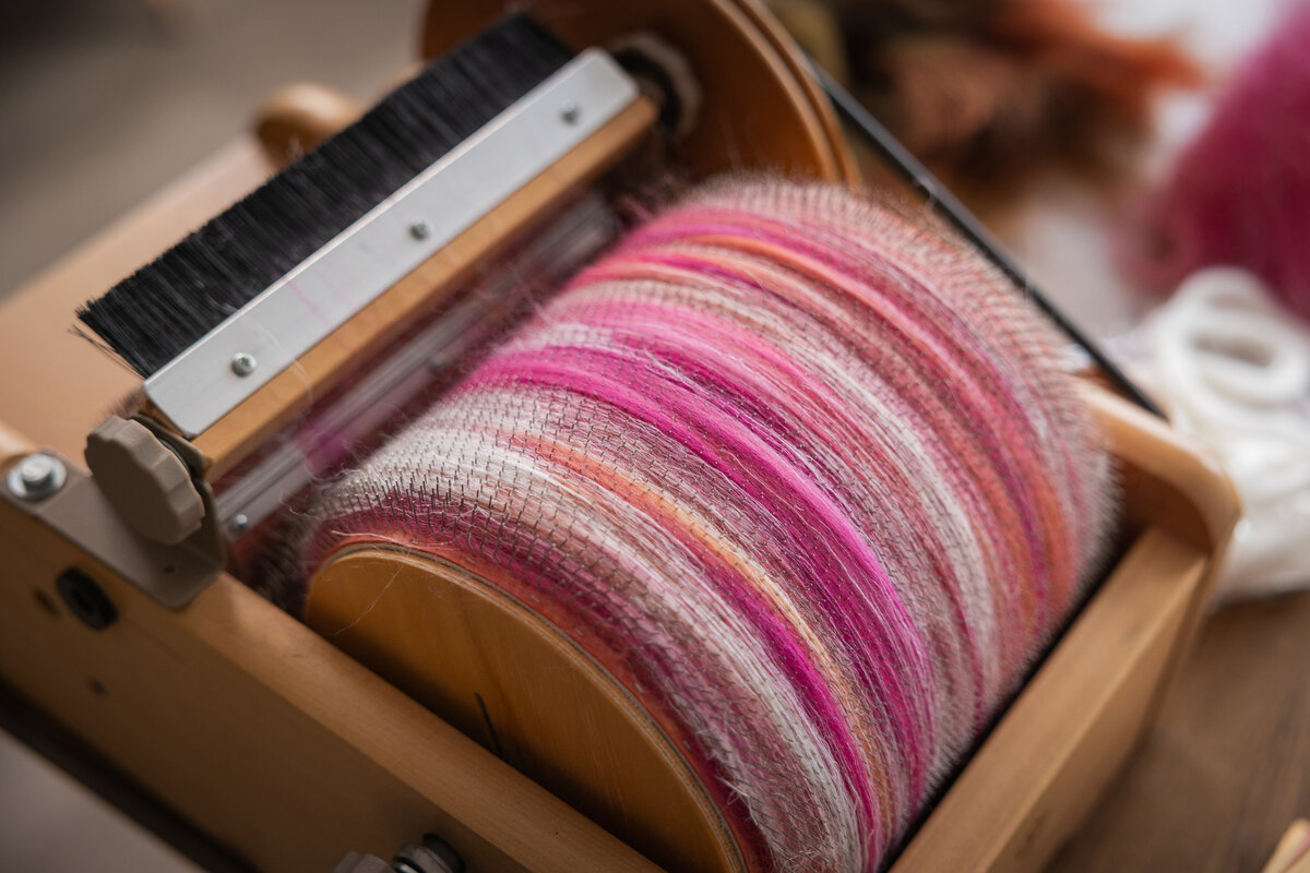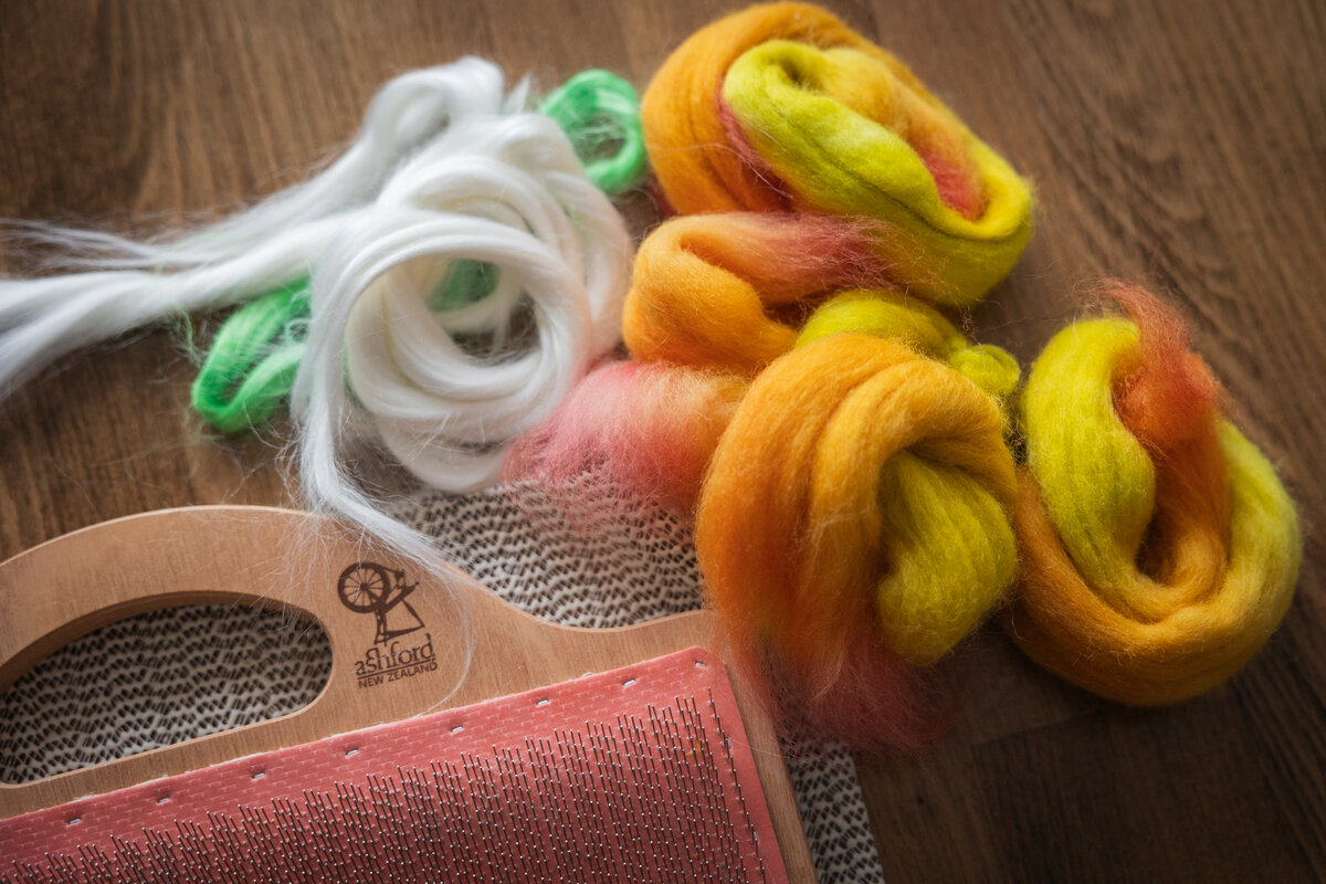 Next, we move into blending. Kim suggests choosing a wool we already know well. When we are familiar with how something like Merino or Corriedale feels to spin, it becomes much easier to notice how adding bast fibres changes both the spinning experience and the final yarn. Using a new-to-you wool can make those differences harder to spot.