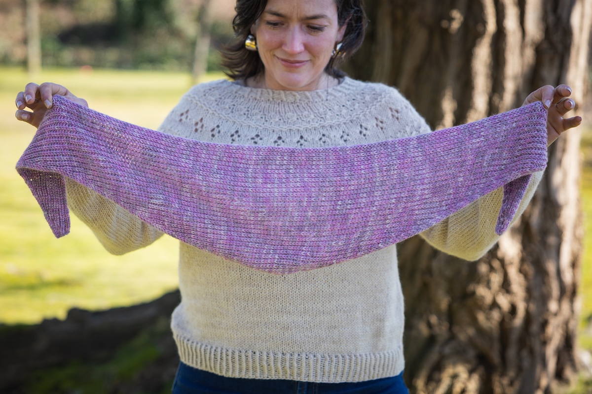 Jaunty Shawl in March’s Dusty Lilac Club Colourway