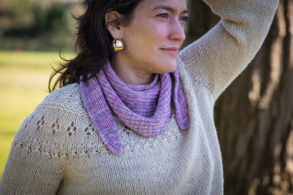 If you’re interested in making a larger shawl, additional skeins of the Dusty Lilac colourway are available in our online shop while supplies last.