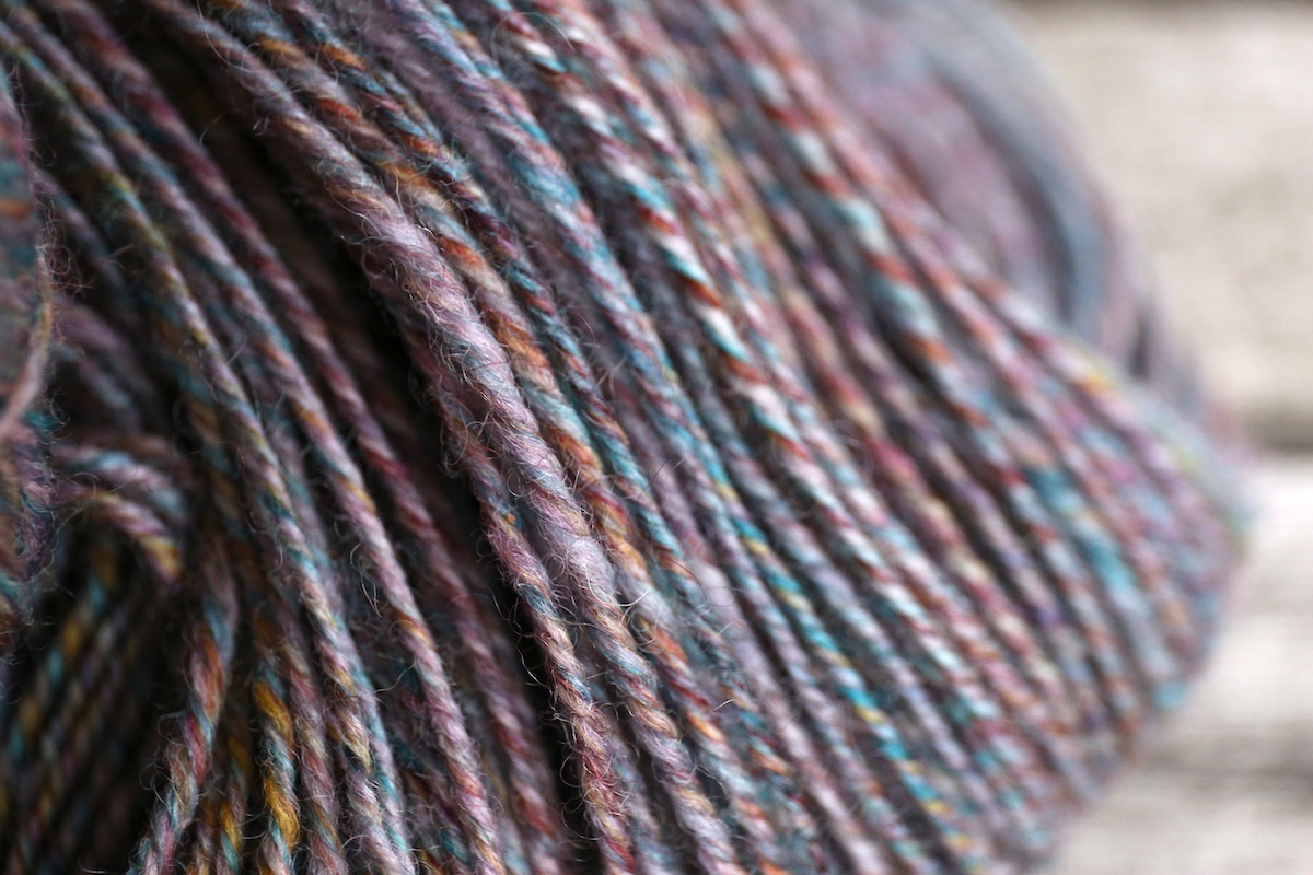 When combining braids from different dyers, things can become more complex—in a good way. Colours may not match as closely, which can introduce more variation and surface texture in the yarn. Rather than blending seamlessly, the colours may sit alongside one another, creating subtle shifts and visual movement as the yarn is spun and plied. This isn’t a drawback, but it does change the overall feel of the yarn.
