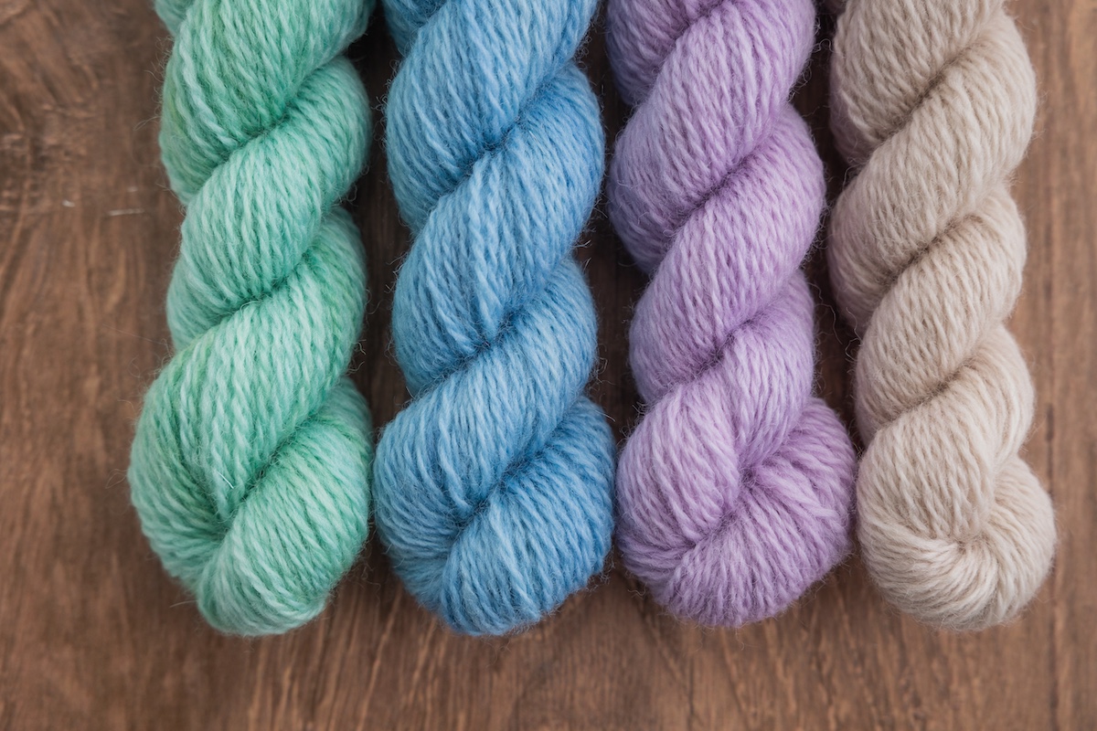 For our April Secret Stash Club, we wanted to create a set of mini-skeins in a palette that would evoke the light, delicate colours of spring. The early crocus, lilacs, bluebells, and lily of the valley flowers that add a touch of colour to those early spring gardens. These colourways were then hand-dyed on a special yarn base: 100% Peruvian Fine wool.
